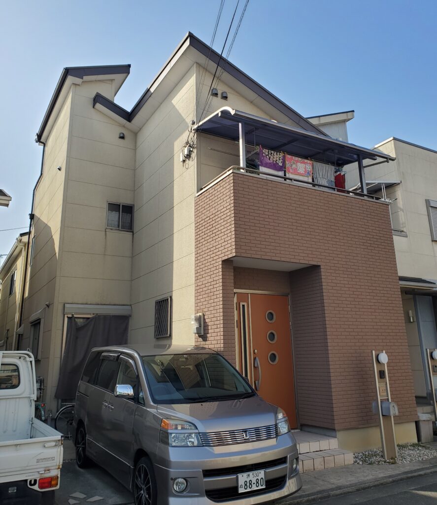 メンテナンス時期ということで相談を受けました。 外壁塗装では色デザインを好きに変更できるので、ご主人の好みを教えていただき、10種類程のCGシミュレーションで絞り込み、玄関扉と調和の合うモダンな配色に決定しました。