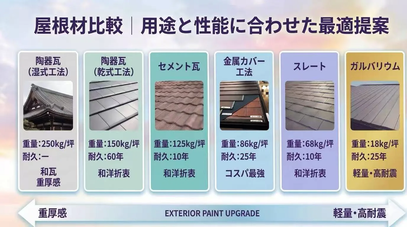 屋根の軽量化は耐震性を高めます。 せっかく屋根材を取り換えるのであれば軽量化を行い、耐震性を高めましょう。