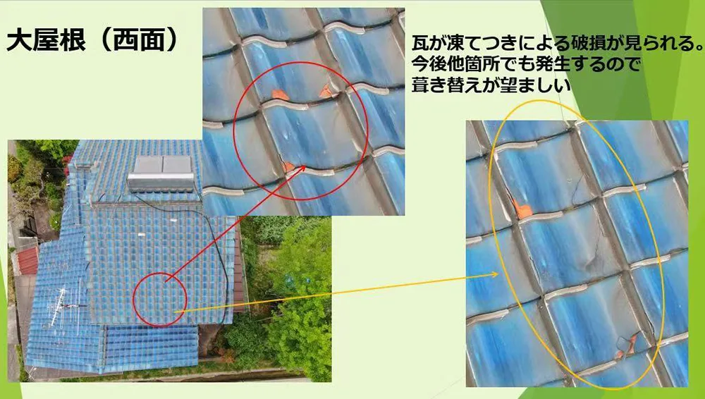 調査名目で屋根に登ってわざと屋根材を破壊し、あたかも元から割れていたかのような写真をお見せし、お客様の不安を煽るような悪徳業者がいる限り、最も安心いただけるには「屋根に登らない事」という結論に至りました。
