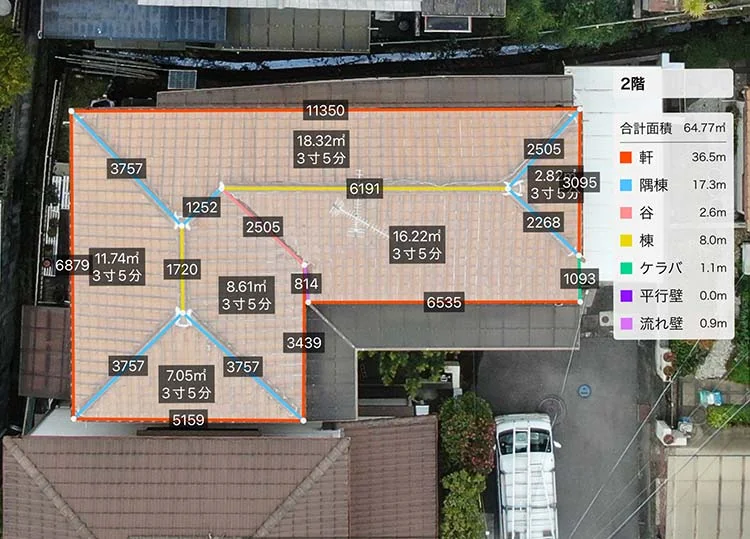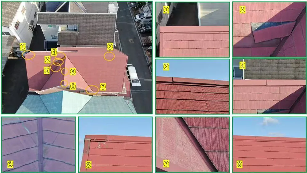 ご安心ください。弊社のドローン調査は、操縦資格者が都度国土交通省に飛行申請を行い許可を得た上で飛行、調査を行います。 また、住宅メンテナンス診断士や雨漏り鑑定士などの資格を持つ「屋根のプロ」が調査を行います。高性能カメラを搭載しているので小石や薄いヒビ割れ、隙間や浮きも見逃しません。また、自動積算機能により採寸も可能です。万が一に備えての保険も完備しております。